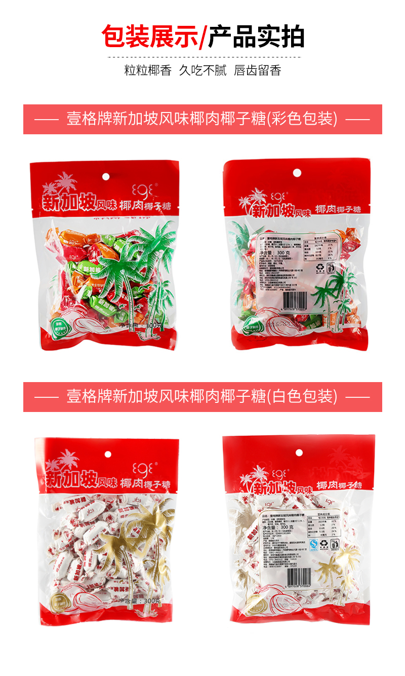 壹格牌-新加坡風(fēng)味椰肉椰子糖-300g/袋