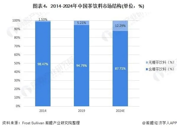 無糖茶飲料市場占比增長明顯